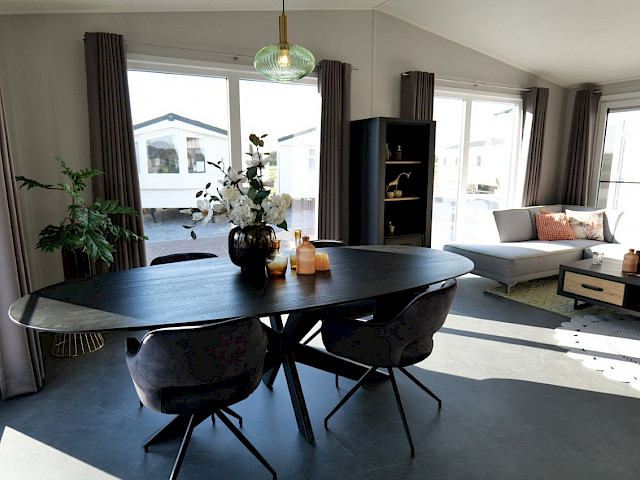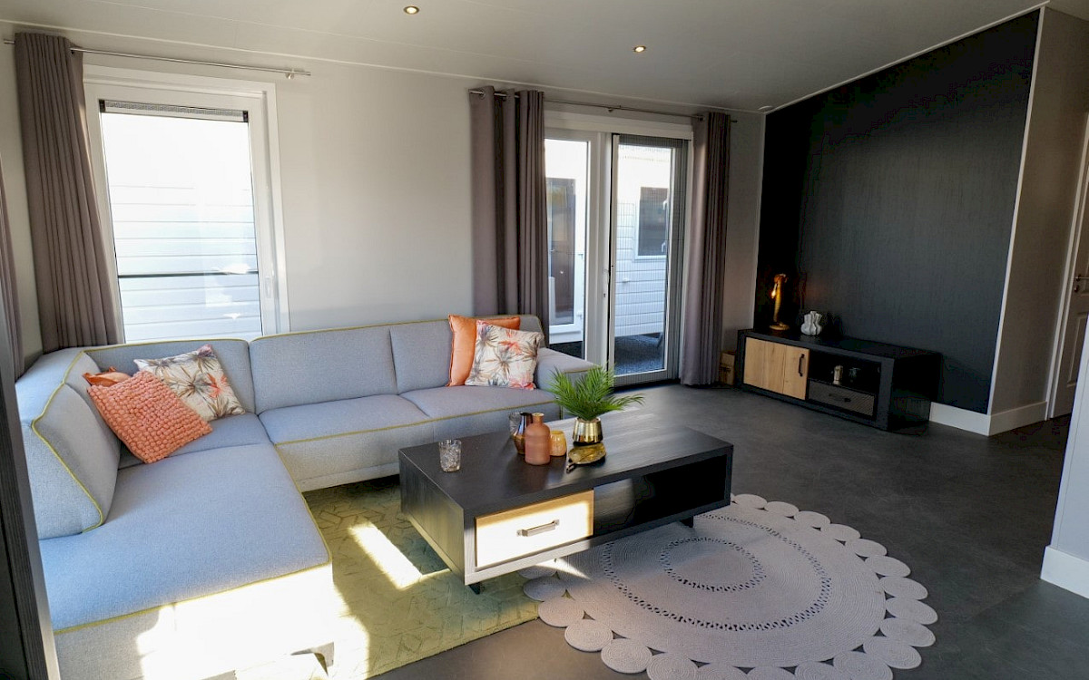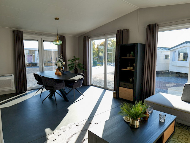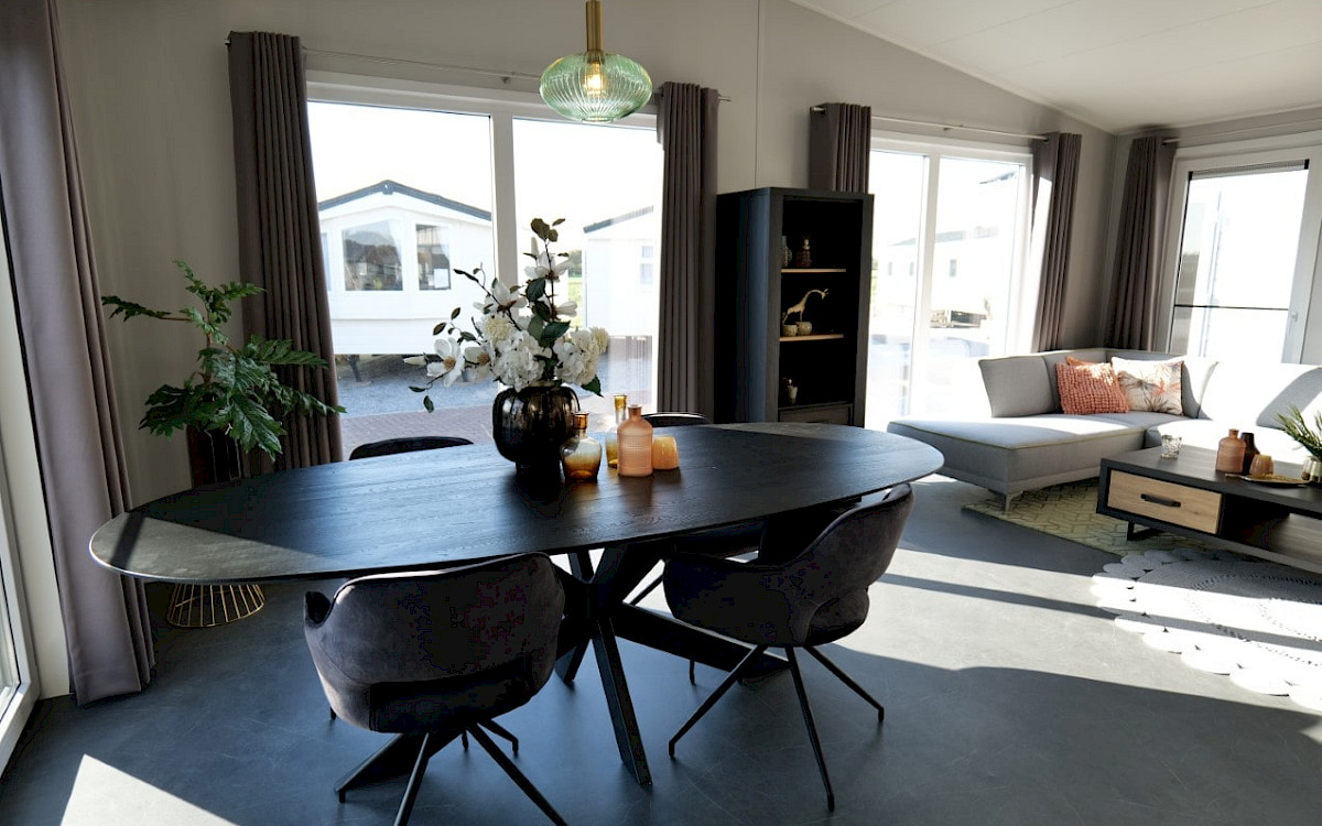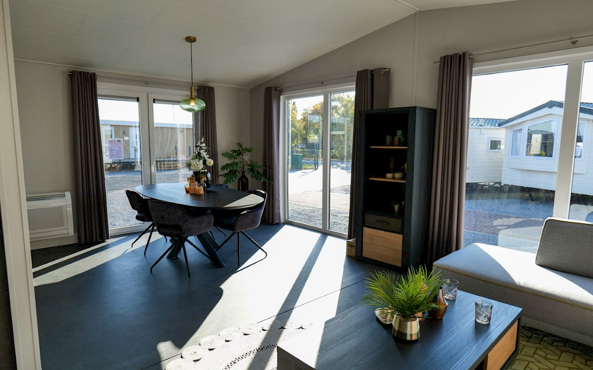 Zoals de naam al weergeeft, is dit een 'Twin-chalet' ofwel een dubbel chalet. Doordat er twee delen tegen elkaar zijn geplaatst ontstaat er enorm veel ruimte en tevens enorm veel mogelijkheden. Bijzonder is dat in dit model een doorgang is gecreëerd tussen de slaap- en badkamer. Bij de keuken is een dakverhoging toegepast. Hierdoor voelt dit model aan als een luxe bungalow. Verder is dit de ECO variant wat betekend dat de hij volledig elektrisch is!