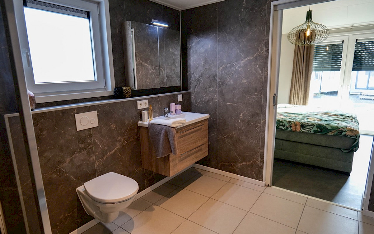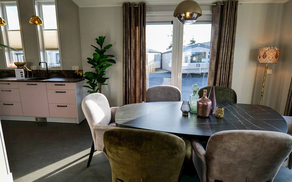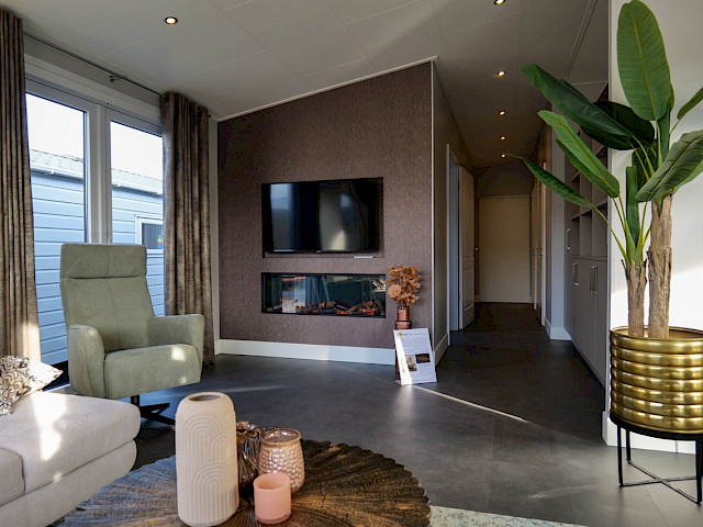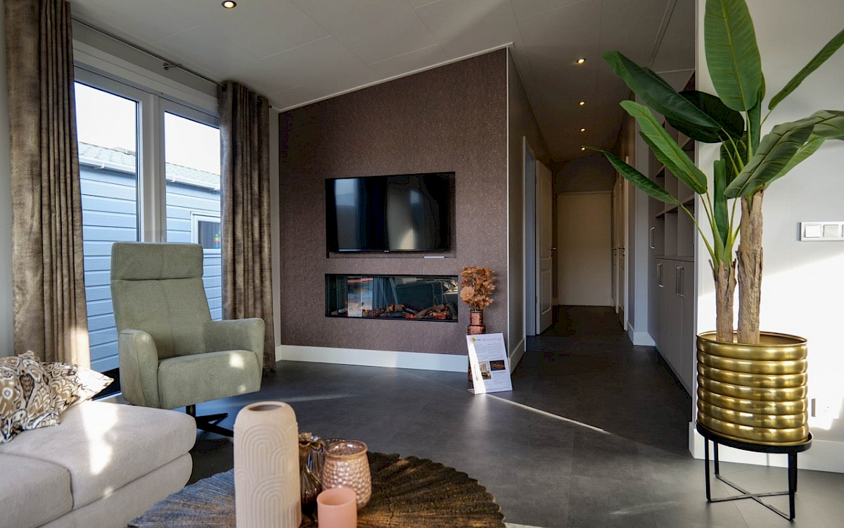 Zoals de naam al weergeeft, is dit een 'Twin-chalet' ofwel een dubbel chalet. Doordat er twee delen tegen elkaar zijn geplaatst ontstaat er enorm veel ruimte en tevens enorm veel mogelijkheden. Bijzonder is dat in dit model een doorgang is gecreëerd tussen de slaap- en badkamer. Bij de keuken is een dakverhoging toegepast. Hierdoor voelt dit model aan als een luxe bungalow. Verder is dit de ECO variant wat betekend dat de hij volledig elektrisch is!