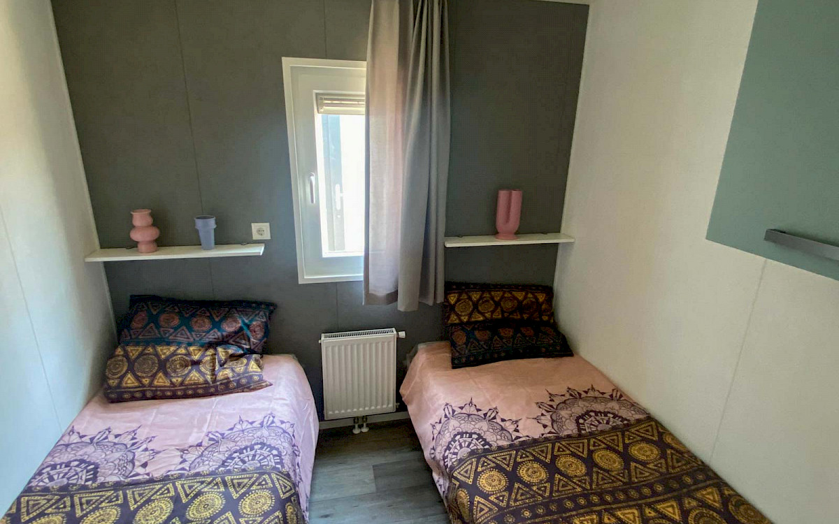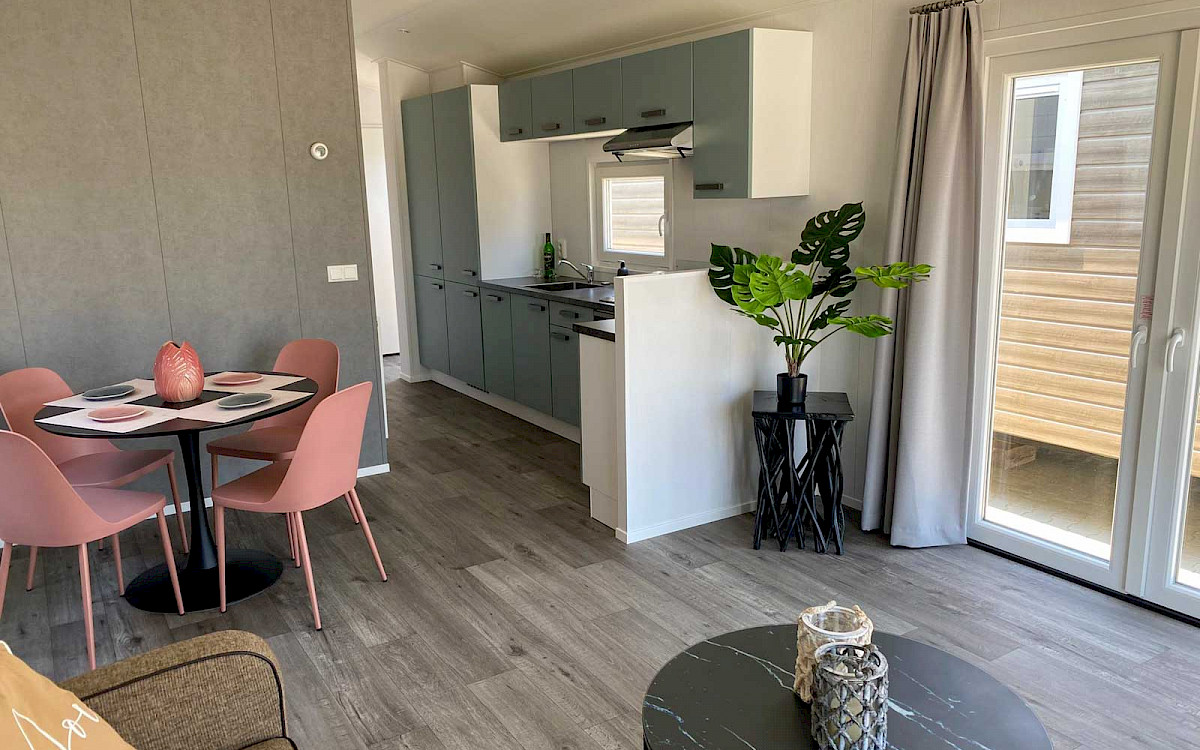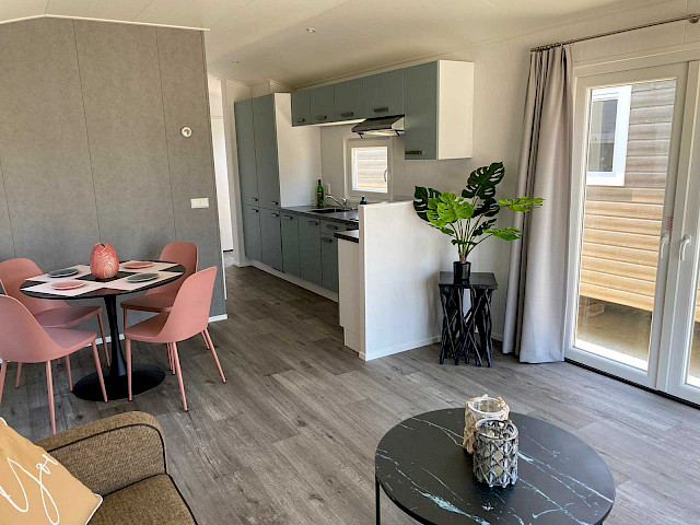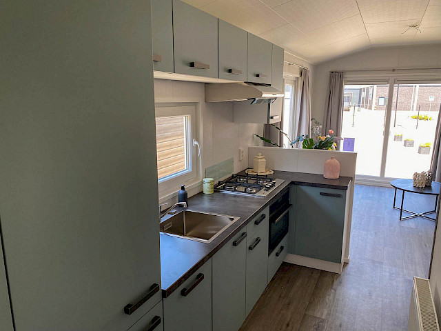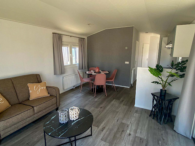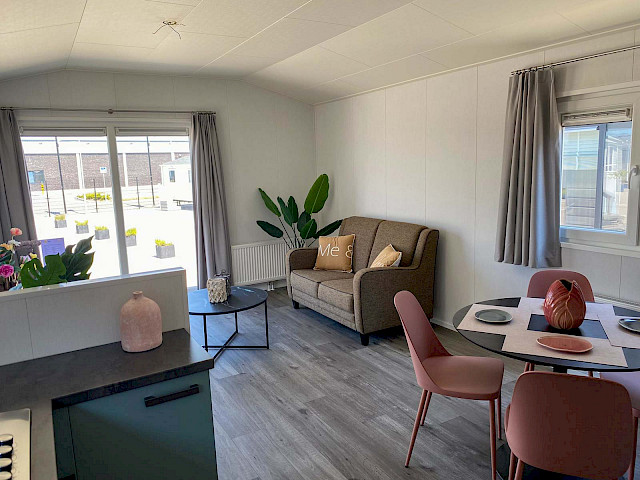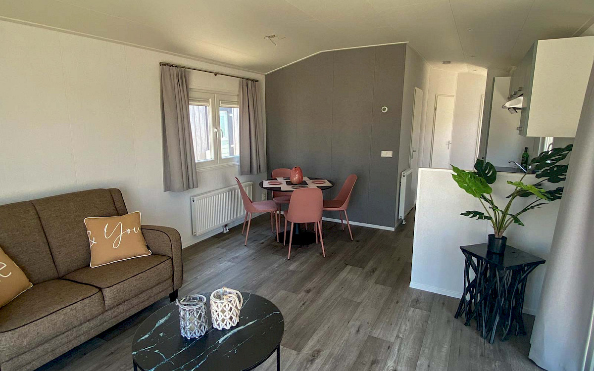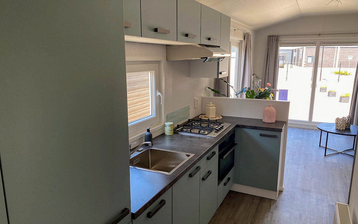 De Bergjes Everest is net even anders dan de standaard modellen doordat zijn raampartij uit het midden geplaatst is. De ruimtelijkheid in de woonkamer en de frisse look en feel gaan gepaard met veel luxe details in de keuken; denk aan een geïntegreerde vaatwasser, een luxe kooktoestel met oven/grill, en een klein barretje. De mooie accent wanden in het chalet maken hem helemaal af!