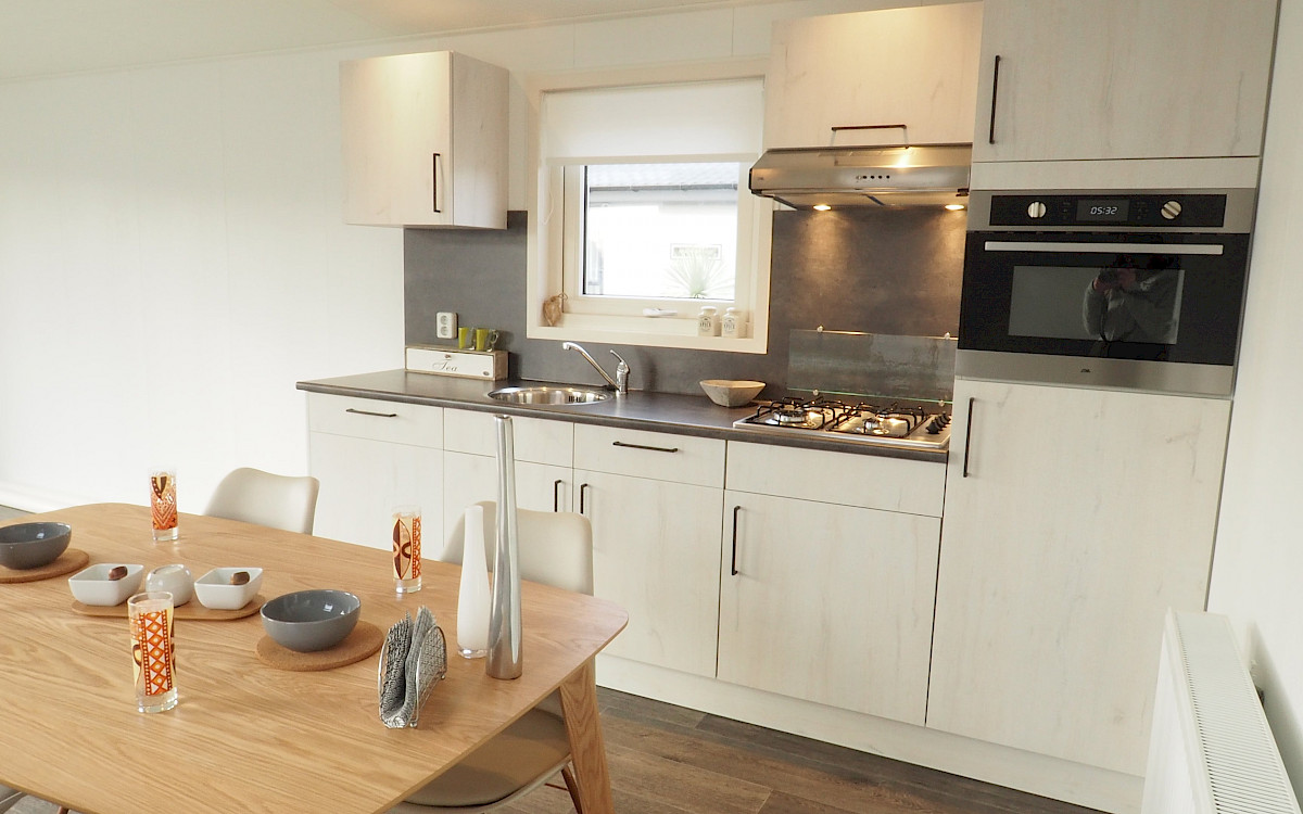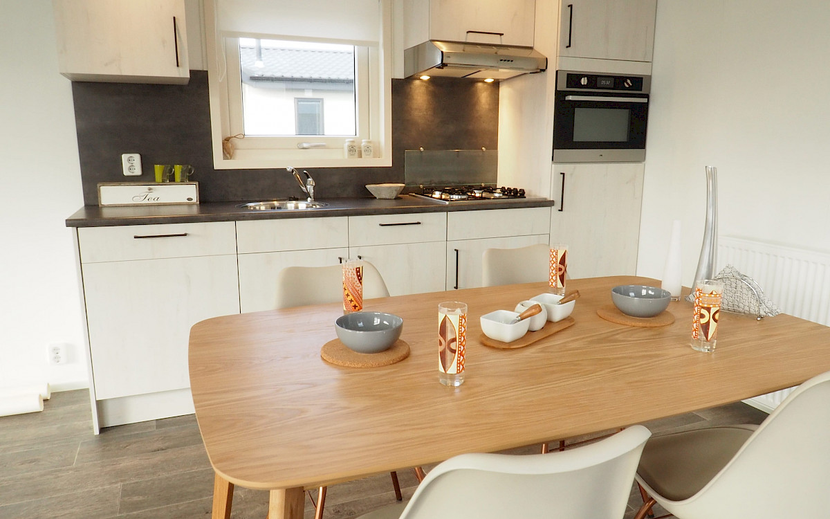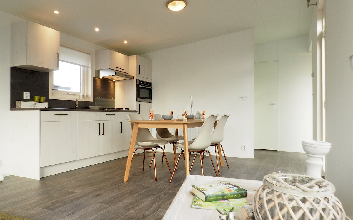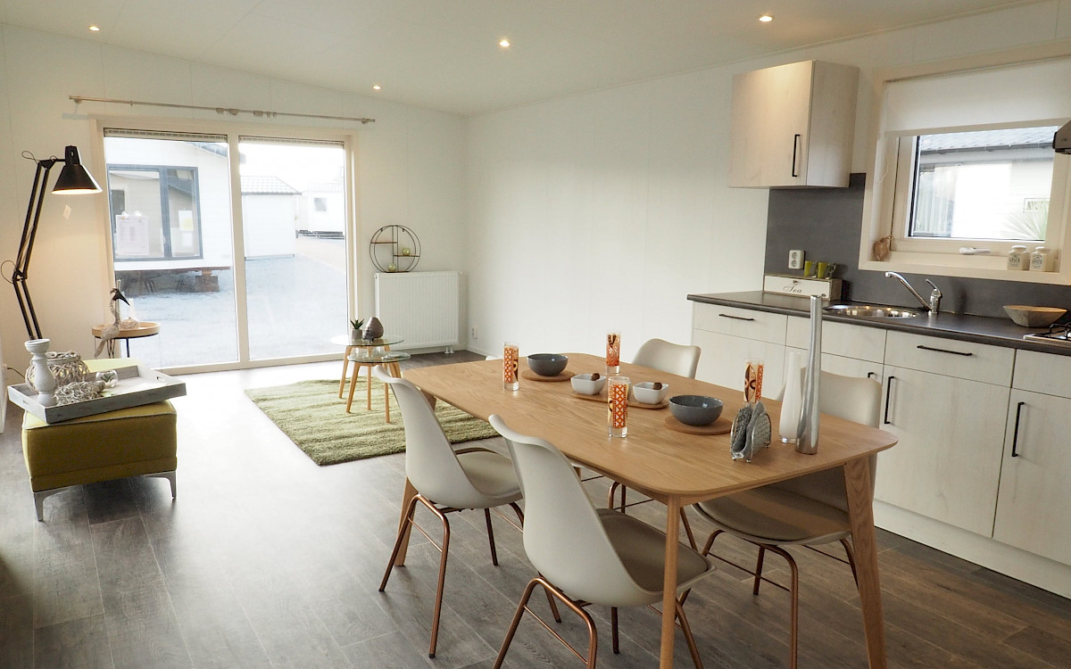 De PK- Chalets Duinhuis L is een zeer ruim model vanwege de luxe L-vorm. Door deze vorm is de Duinhuis heel ruim en geeft het zowel binnen en buiten een prettige sfeer. De grote ramen in de voorgevel zorgen voor veel licht in de woonkamer. Alle kamers in de Duinhuis zijn makkelijk toegankelijk, erg ruim en zeer modern ingericht.