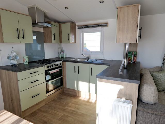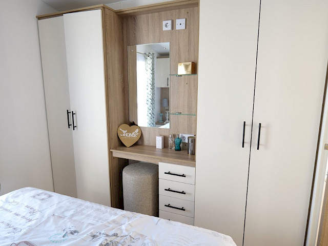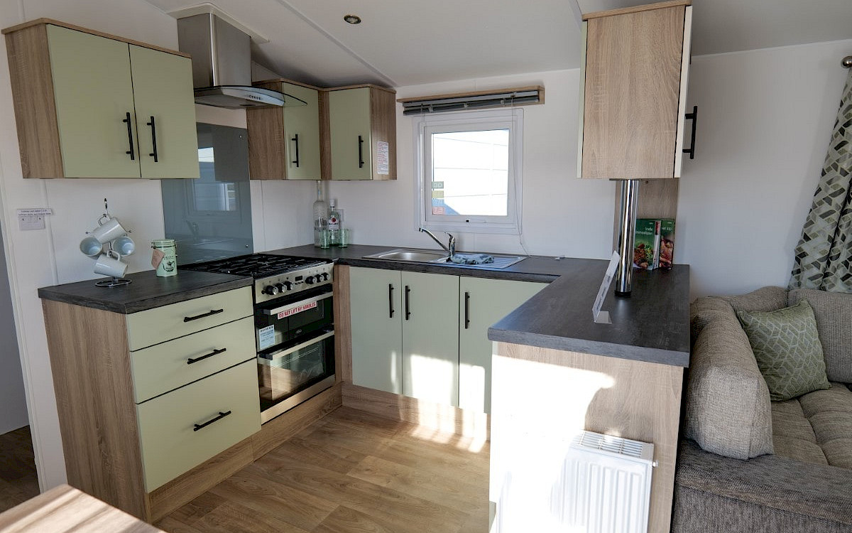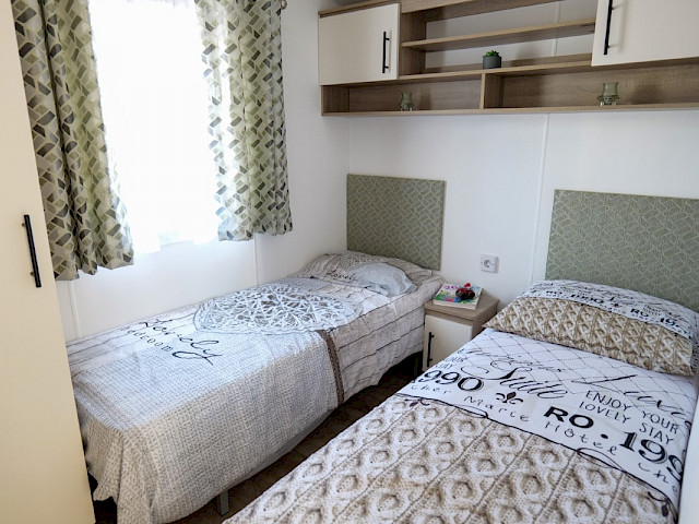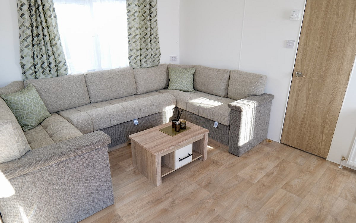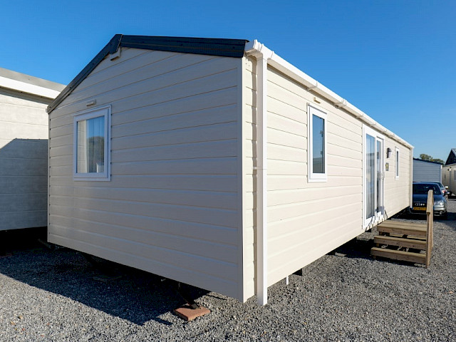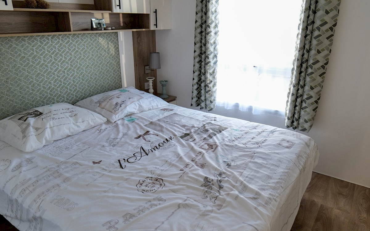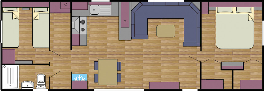 Kenmerkend aan dit model is de grote schuifdeur in het midden van de stacaravan. De Jura beschikt over een centrale woonkamer met een zeer moderne en complete U-keuken. Standaard beschikt de Jura over twee ruime inloopkasten waar u al uw spullen in kunt opbergen. Beide slaapkamers bevinden zich aan weerszijde van het chalet. Dit kan de ideale uitkomst zijn voor gezinnen die overdag graag samen zijn en ‘s avonds meer privacy wensen.