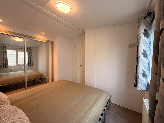 Op bovenstaande afbeeldingen wordt volgend model getoond: 1100 x 400 - 2 slaapkamers. Met toegepaste opties: schuifdeur lange zijde en een vaatwasser. Met een totaal prijs van: €64.843,-