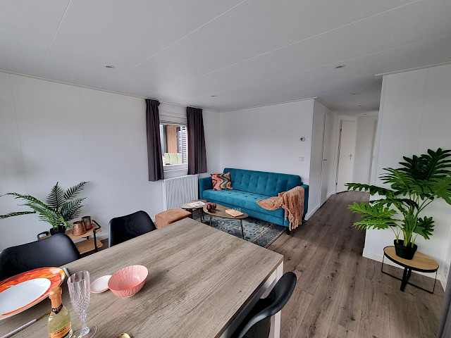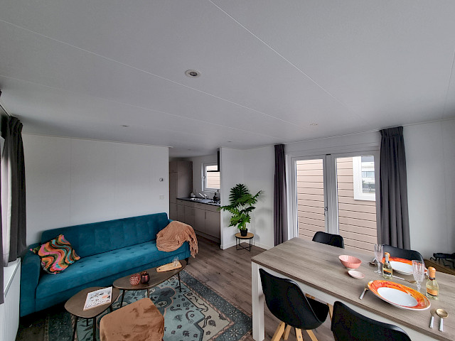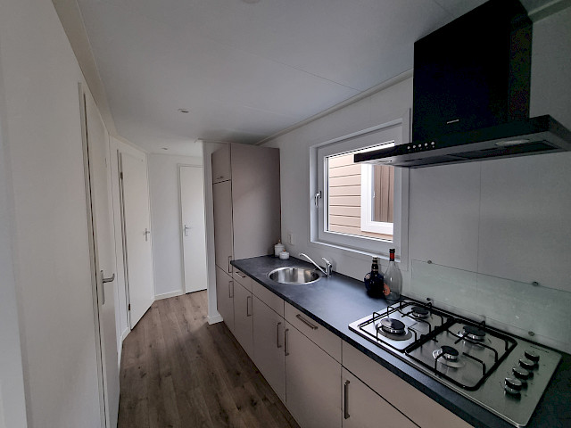 De Vulture heeft een rijk uitgeruste keuken, een gezellige ruime woonkamer met openslaande tuindeuren en natuurlijk twee fijne slaapkamers en een badkamer. Dit model kunt u nog naar wens aanpassen door bijvoorbeeld extra luxe opties toe te voegen. Verder is de Vulture een Green Label chalet. Dat betekent dat hij goed geïsoleerd is met buitenwanden van wel 12 cm dik, maar ook dat hij volledig elektrisch is uitgerust. Verder is dit model gebouwd in onze compleet energie neutrale fabriek in Nederland waardoor we echte Nederlandse kwaliteit kunnen bieden met de laagste prijs garantie.