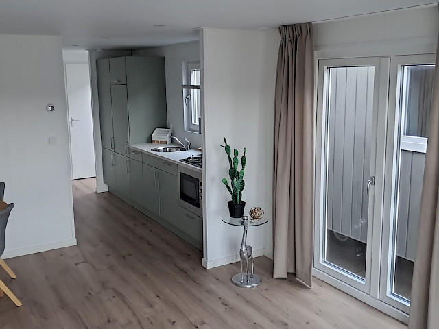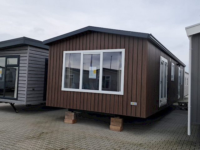 De Vulture heeft een rijk uitgeruste keuken, een gezellige ruime woonkamer met openslaande tuindeuren en natuurlijk twee fijne slaapkamers en een badkamer. Dit model kunt u nog naar wens aanpassen door bijvoorbeeld extra luxe opties toe te voegen. Verder is de Vulture een Green Label chalet. Dat betekent dat hij goed geïsoleerd is met buitenwanden van wel 12 cm dik, maar ook dat hij volledig elektrisch is uitgerust. Verder is dit model gebouwd in onze compleet energie neutrale fabriek in Nederland waardoor we echte Nederlandse kwaliteit kunnen bieden met de laagste prijs garantie.