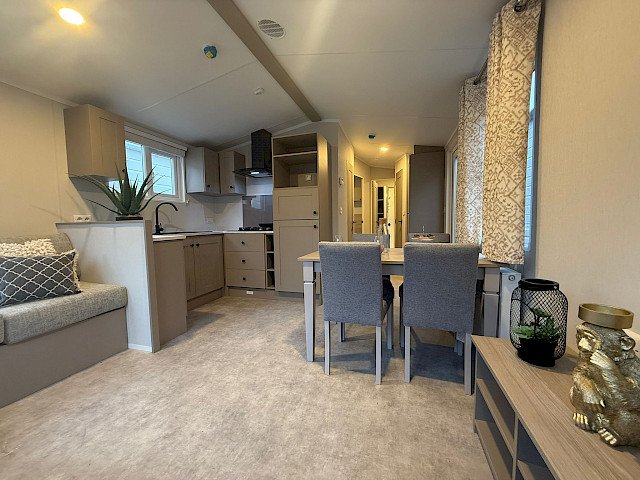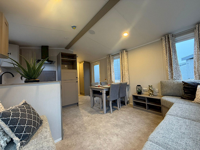 De Flore is een prachtige stacaravan met moderne uitstraling door de lichte buitenbekleding.. Verder is de Flore vrij compact in zijn afmeting maar geeft van binnen toch veel ruimte en luxe. U vindt hier namelijk een gezellige woonkamer met genoeg zitplaatsen, een mooie U-keuken voor de lekkerste gerechten, 2 slaapkamers en een fijne badkamer. Benieuwd naar dit model? Bezoek gerust onze vestiging en ontdek wat de Flore allemaal te bieden heeft.