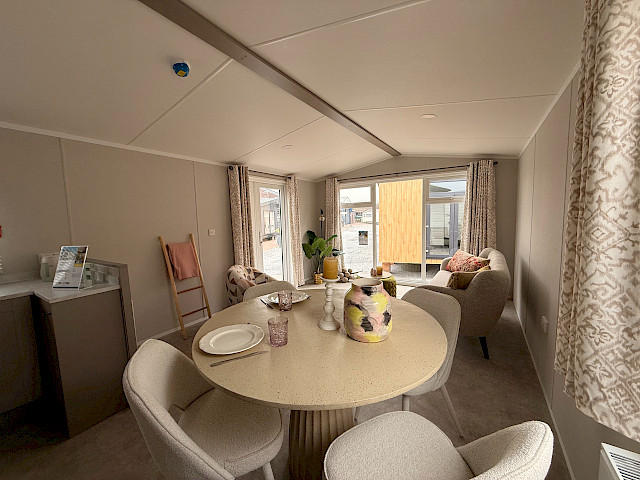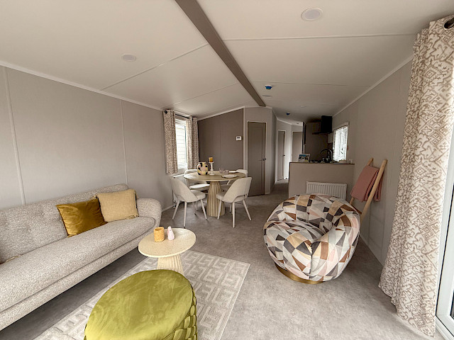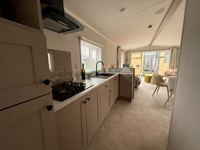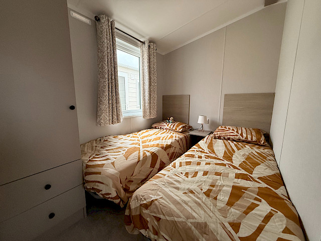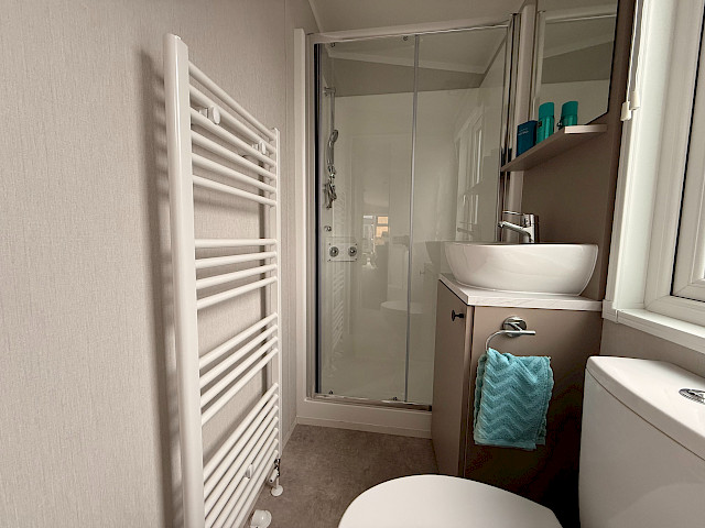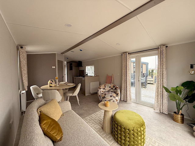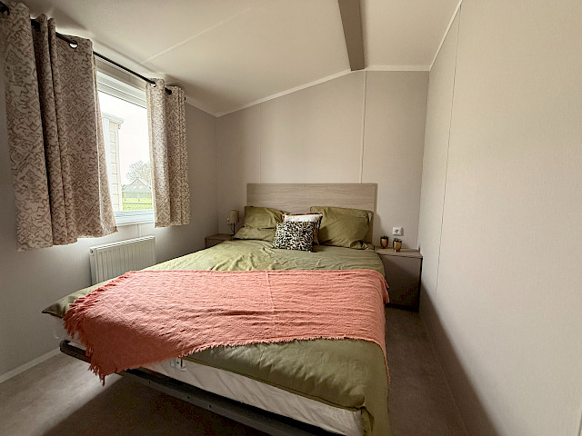 De Stacaravan Ruby biedt een doordacht ontwerp en hoog comfort. De keuken is praktisch ingericht met een geïntegreerde koelkast, vriezer en een 4-pits gasfornuis. De woonkamer voelt licht en ruim dankzij de grote ramen, terrasdeur en biedt een TV-aansluiting. De hoofdslaapkamer beschikt over een comfortabel tweepersoonsbed, ruime kledingkast en verwarming. Daarnaast biedt de tweede slaapkamer twee eenpersoonsbedden en een kledingkast, wat het ideaal maakt voor gasten. De badkamer is modern uitgerust met een douchecabine, toilet, wastafelmeubel en verwarming. De Ruby is volledig afgewerkt en klaar voor gebruik. Een elegante en functionele keuze!