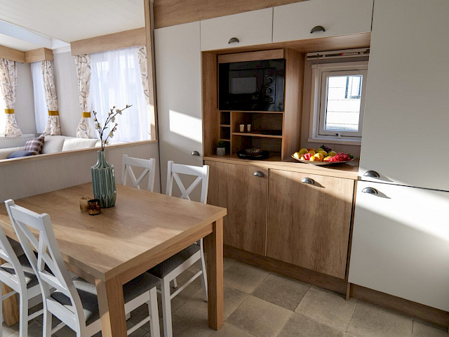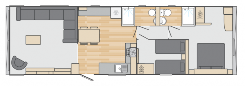 De Swift Biarritz Lodge is een super compleet model. Naast de opties weergegeven hieronder bevat dit model zelfs een wasmachine/droger in 1, een sound system, een dakraam en een tweede badkamer!