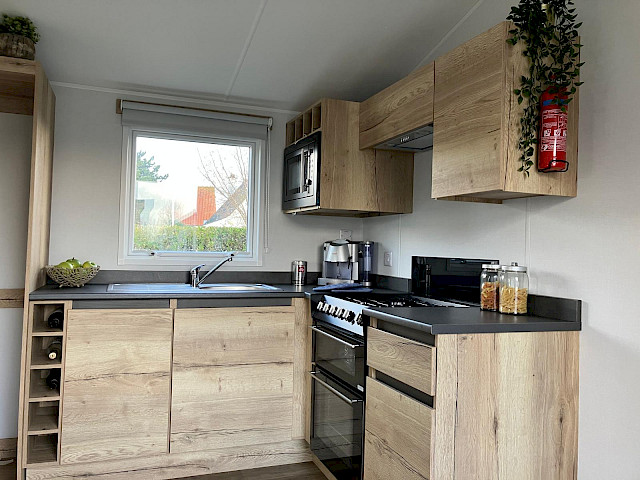 De Ellerton is zorgvuldig ontworpen om de beschikbare vloeroppervlakte optimaal te benutten, zodat er genoeg plek is voor het hele gezin. De praktische keuken in L-vorm biedt volop ruimte om samen te koken, terwijl de open leefruimte ervoor zorgt dat je altijd in contact blijft met je familie of vrienden. De slaapkamers bieden alles wat je nodig hebt: een comfortabel bed, en genoeg opbergruimte voor kleding en persoonlijke spullen.
