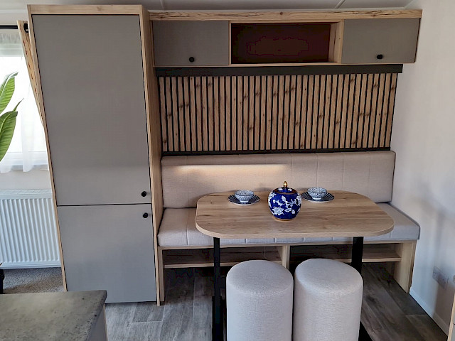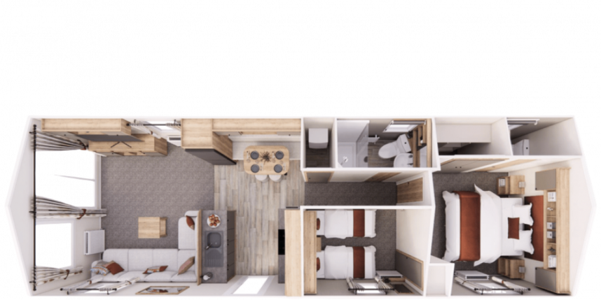 De Willerby Rio is een moderne en sfeervolle stacaravan die comfort en gebruiksgemak perfect combineert. Dankzij de slimme indeling voelt de ruimte open en gezellig aan, met een lichte woonkamer, royale hoekbank en grote ramen die veel daglicht binnenlaten. De keuken is praktisch ingericht met moderne apparatuur en biedt voldoende opbergruimte, terwijl de eethoek ideaal is voor gezellige momenten met familie of vrienden. In de twee slaapkamers geniet je van rust en comfort, met een ruime master bedroom voorzien van veel kastruimte en een tweede slaapkamer die perfect is voor logees of kinderen. De Willerby Rio biedt een stijlvolle en betaalbare oplossing voor wie op zoek is naar een ontspannen tweede thuis.