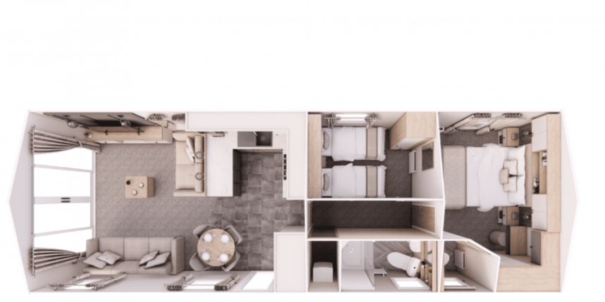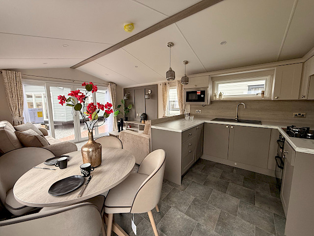 Willerby Salisbury is een praktisch en comfortabel ingerichte stacaravan met een moderne, neutrale uitstraling. Door het gebruik van zachte materialen en rustige kleuren oogt het interieur aangenaam en uitnodigend.