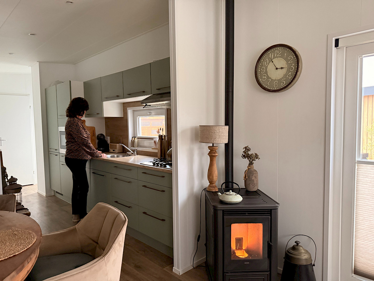 Tijdens het gesprek met De Bergjes besloot ik voor een op maat gemaakt chalet te gaan, net zoals mijn broer had gedaan. Ik kon zelf keuzes maken over het interieur en de indeling, wat een groot pluspunt was. Zo heb ik het chalet aan de voorkant laten verbreden voor een ruimere leefruimte en de badkamer zo aangepast dat de wc iets meer uit het zicht zit. Dankzij deze aanpassingen voelt het chalet echt als mijn eigen plek en woon ik met veel plezier op camping Markdal!