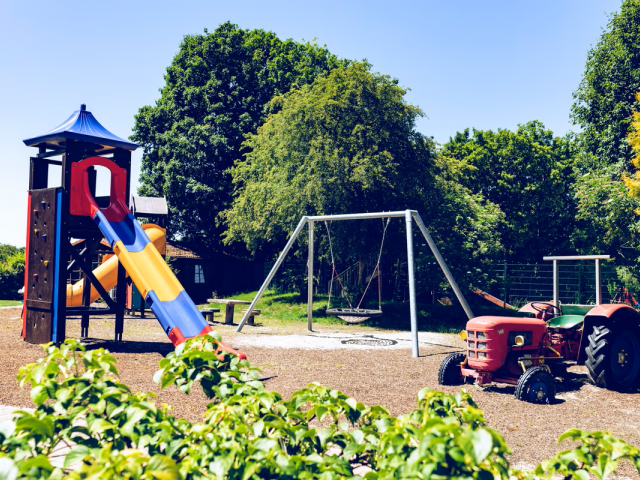 Voor de jongste gasten is het park een waar paradijs. In de avontuurlijke speeltuin kunnen kinderen naar hartenlust klimmen, klauteren, glijden en schommelen. Extra bijzonder is de mogelijkheid om plaats te nemen op een echte tractor – klaar voor een klein avontuur vol speelplezier.